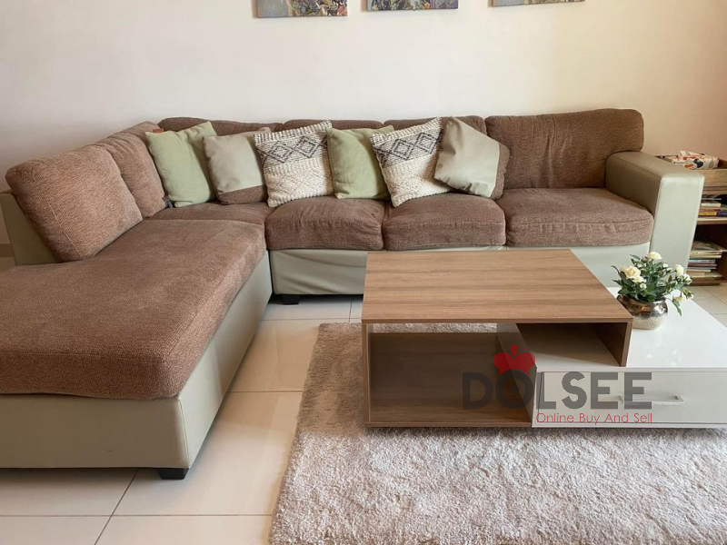 5 seater Sofa with 6 pillows - 500 aed TV Unit with 3 drawers and 2 cabinet storages - 300 aed Coffee table - 200 aed