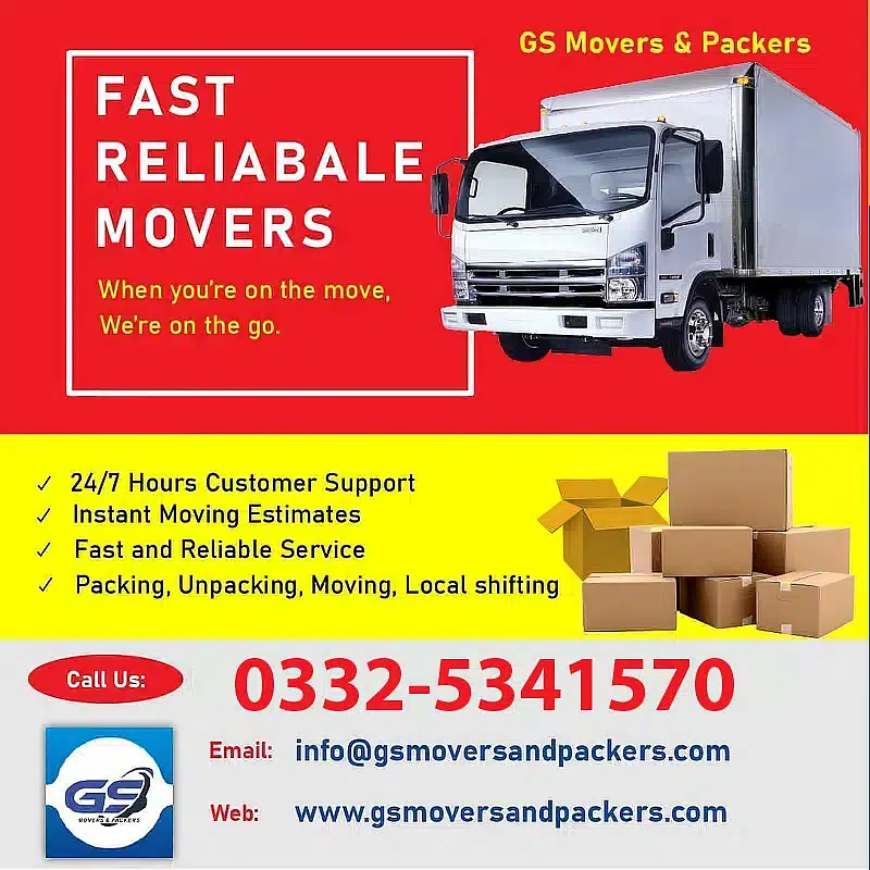 GS Movers & Packers offers complete moving services from providing boxes and moving accessories to helping to pack your goods, move your goods, store your goods, and unpack and reassemble your goods and furniture. We are one the best and oldest companies in this field, working since 2010 and have been operating for more than 13 years. We provide quality and comfortable moving and home-shifting services all over Pakistan.