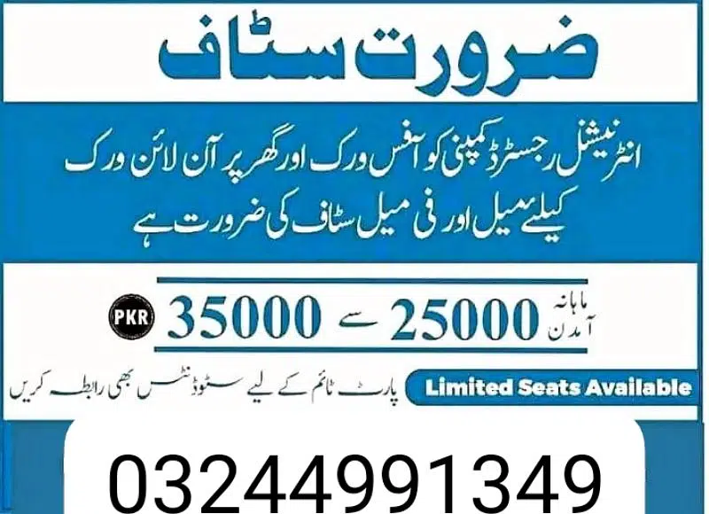 Male Female Seats Available Now Everyone Apply for Job Online Working.