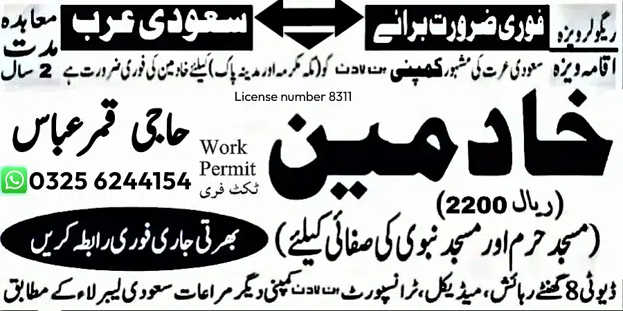 . مرد اور خواتین سعودی عرب (مسجد نبوی) کے لیے ملازمت کی پیشکش کے لیے خدمت درکار ہے
