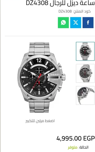 ساعة يد رجالي ديزل اللون اسود مع فضي ، جديده تماما لم تستخدم .