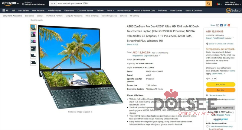Asus Zenbook Pro Duo - UX581LIntel Core i9 - 10th GEN32gb ram - 1tb SSDNvidia RTX 2060 6gb ggr6 GPU15 inch OLED 4k Touch Display2nd Display ScreenPad plus Touch 2kComplete Box - Like New ConditionENG/Arabic KeysLaptop + Charger + PEN + Sleeve + Box9000 AED Final