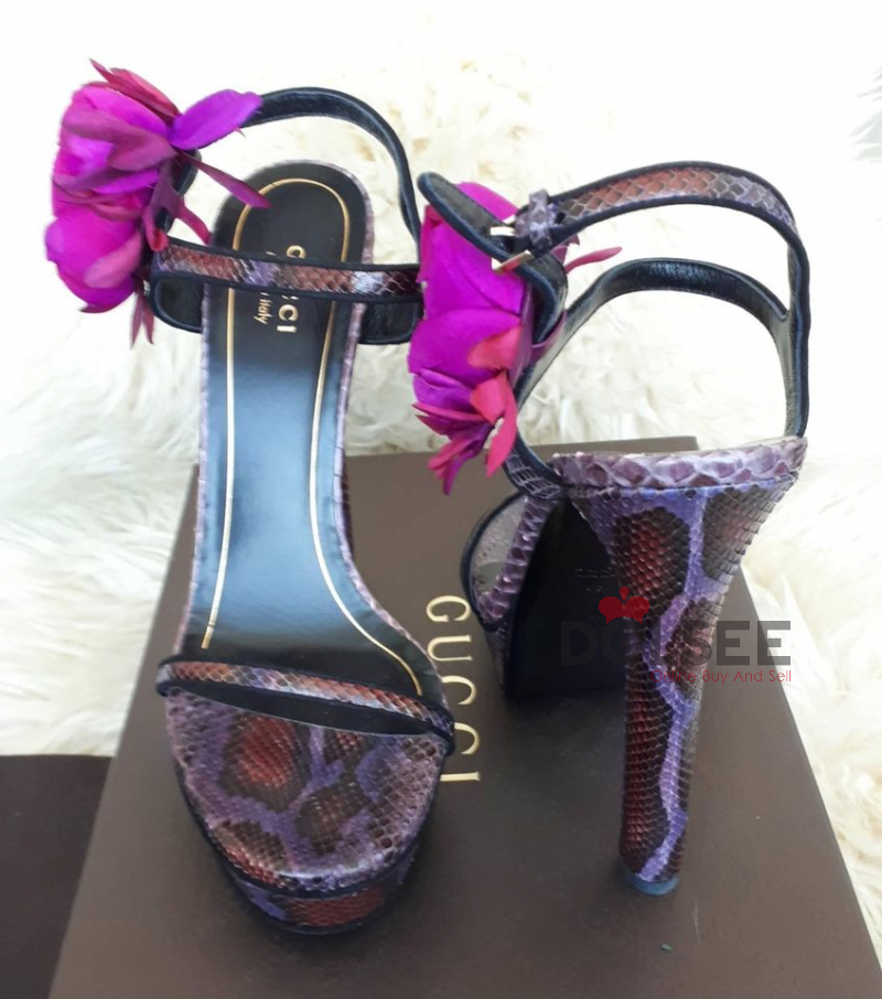 BRAND NEW breathtakingly gorgeous G*cci purple black p.ython ðŸ platform sandals in size 39. These exquisite beauties with detachable flower embellishment, 140mm heel including 40mm platform, will definitely make you the talk of the town.Includes box & dust bag.Retailed at AED 5500 (US$ 1495). Selling Price: AED 1600Collection from Al Barsha 1, Dubai