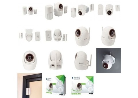 Our IP camera set has everything you need: one IP camera with full rotatability (pan/tilt), integrated siren, SD card recording, speaker, microphone, a door/ window sensor and a PIR motion detector.