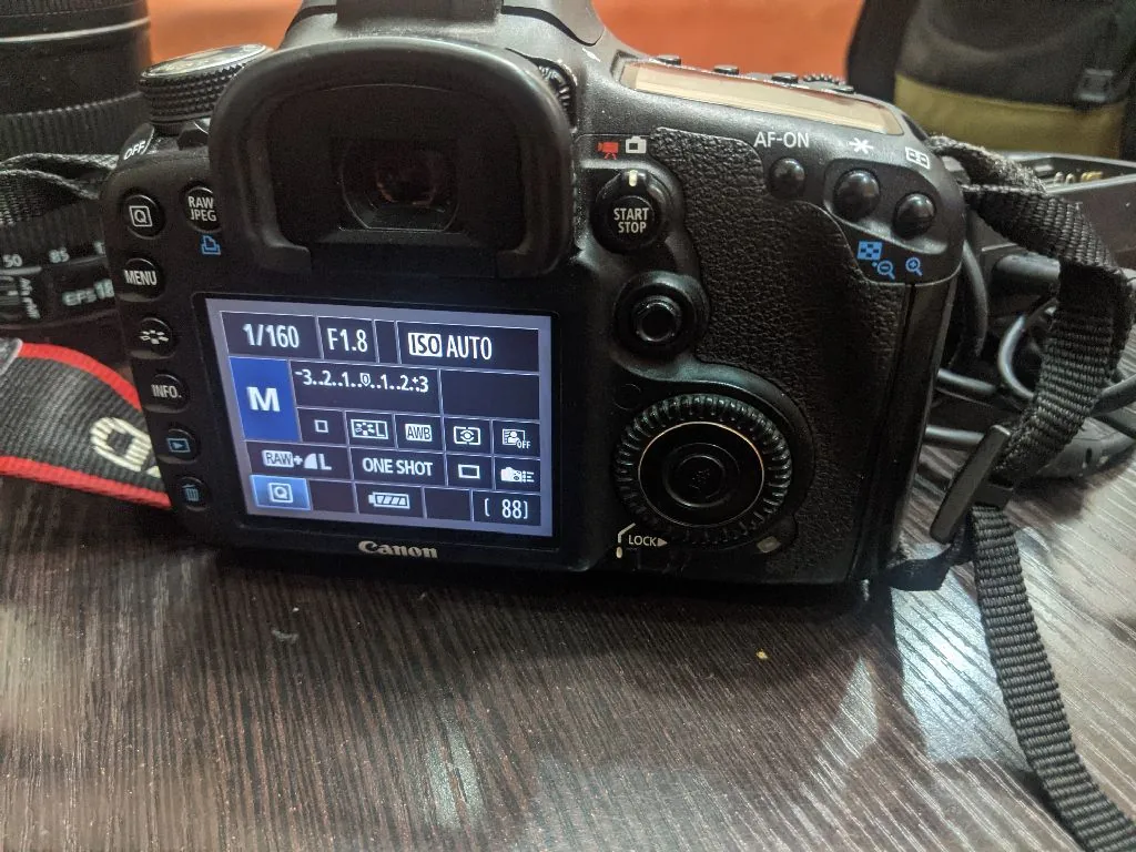 كاميرا Canon 7D مع عدسة Zoom و2 شاحن Canon وبطاريتين Canon وحقيبتها الأصلية وCanon سلكي مومري 4G /