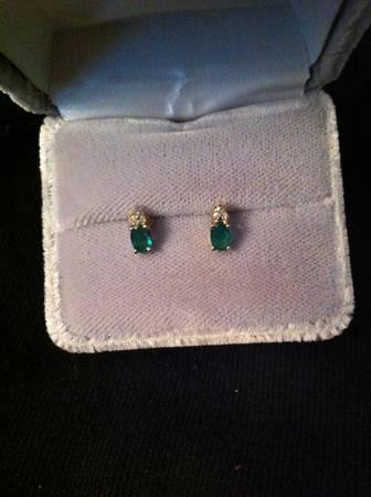 14kt gold genuine emerald and diamond earrings, $150.00