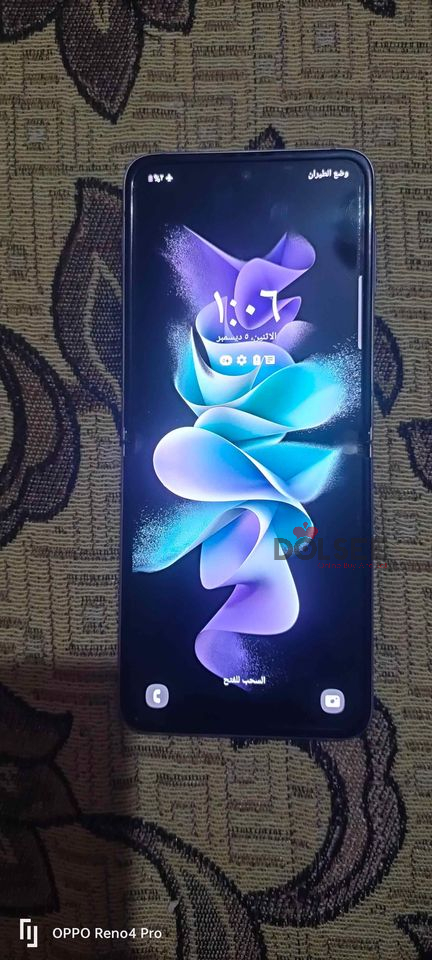سامسونج z flip 3مساحه 256gرام 8gمعالج سناب دراجون 888الجهاز كسر زيرو بالعلبه والضمان ساري لغايه شهر 7 اللي جاي 2023