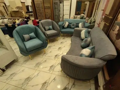 لوصف الانترية الإسباني سفنج كثافةعالية خشب زان احمر قماش جلد مقلوب الرجول استلس محملعباره عن :- كنبه اتنين مقعد مقاس 180 سم وكنبة تلاته مقعد 210 متر واتنين كرسي فوتيه قطر الكرسي متر
