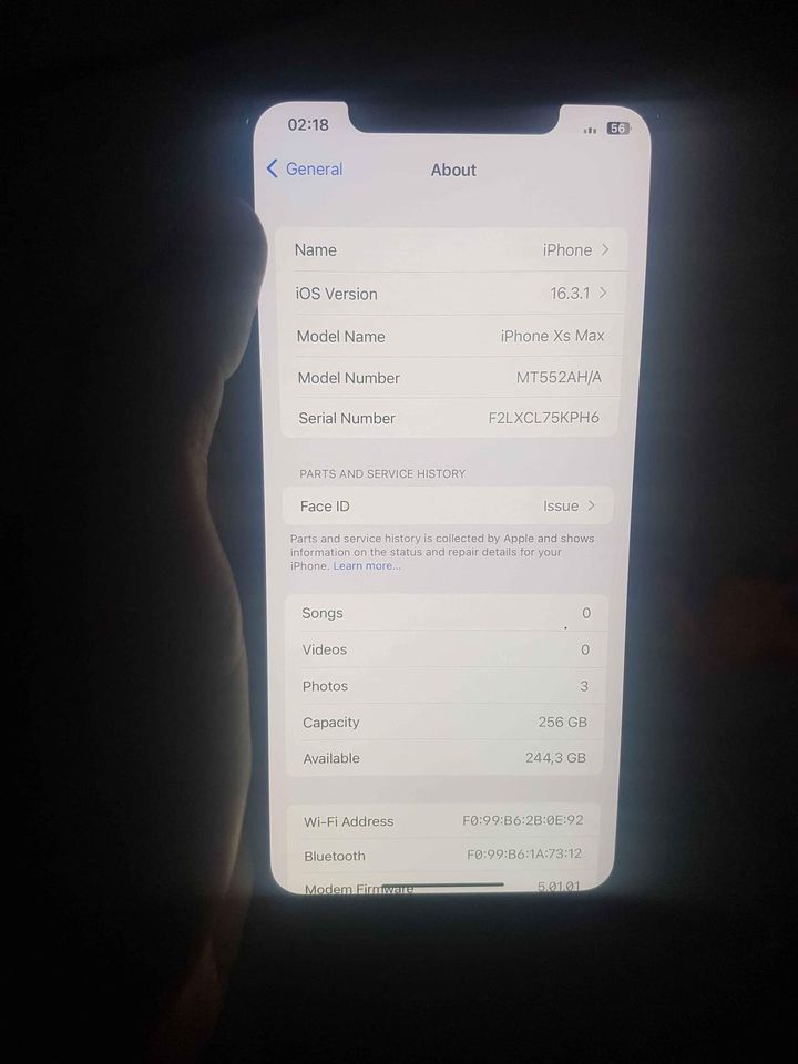 Set All ok but face fail .....non pta 256gb all orignl John Criss