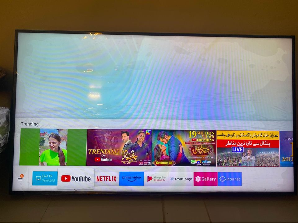 SAMSUNG 50” INCH ORIGINAL 4K LED 10/10 CONDITION FULL SMART 4k LED Screen Size50 InchesScreen TypeLEDDisplayResolution1920 x 10803DNoHDYes4KYes8KOperating SystemRamRomCpuUsbWifiBluetoothFeaturesSmart TVYesPre-Install ApplicationsNetflixYoutubeGoogle PlayAmazon Prime VideoGoogle AssistantSyed Muhammad Ali Shah