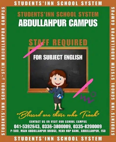 Teacher Required in Students Inn school Abdullahpur campus primary and high section teacher