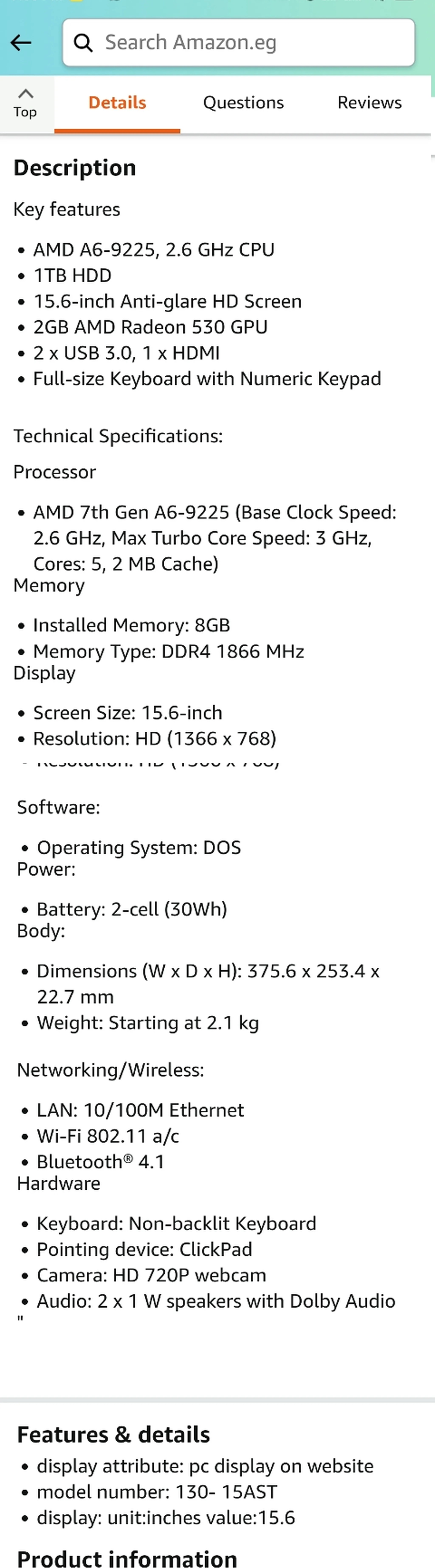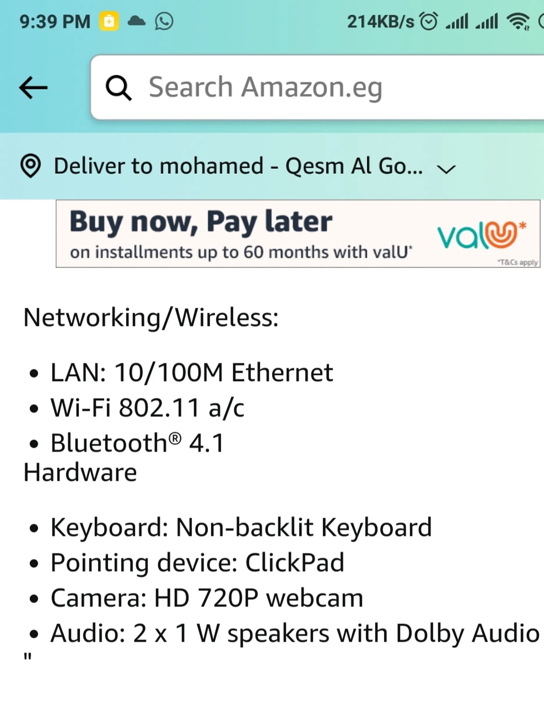 8جيجا بايت DDR4 رام، 1تيرا بايت HDD