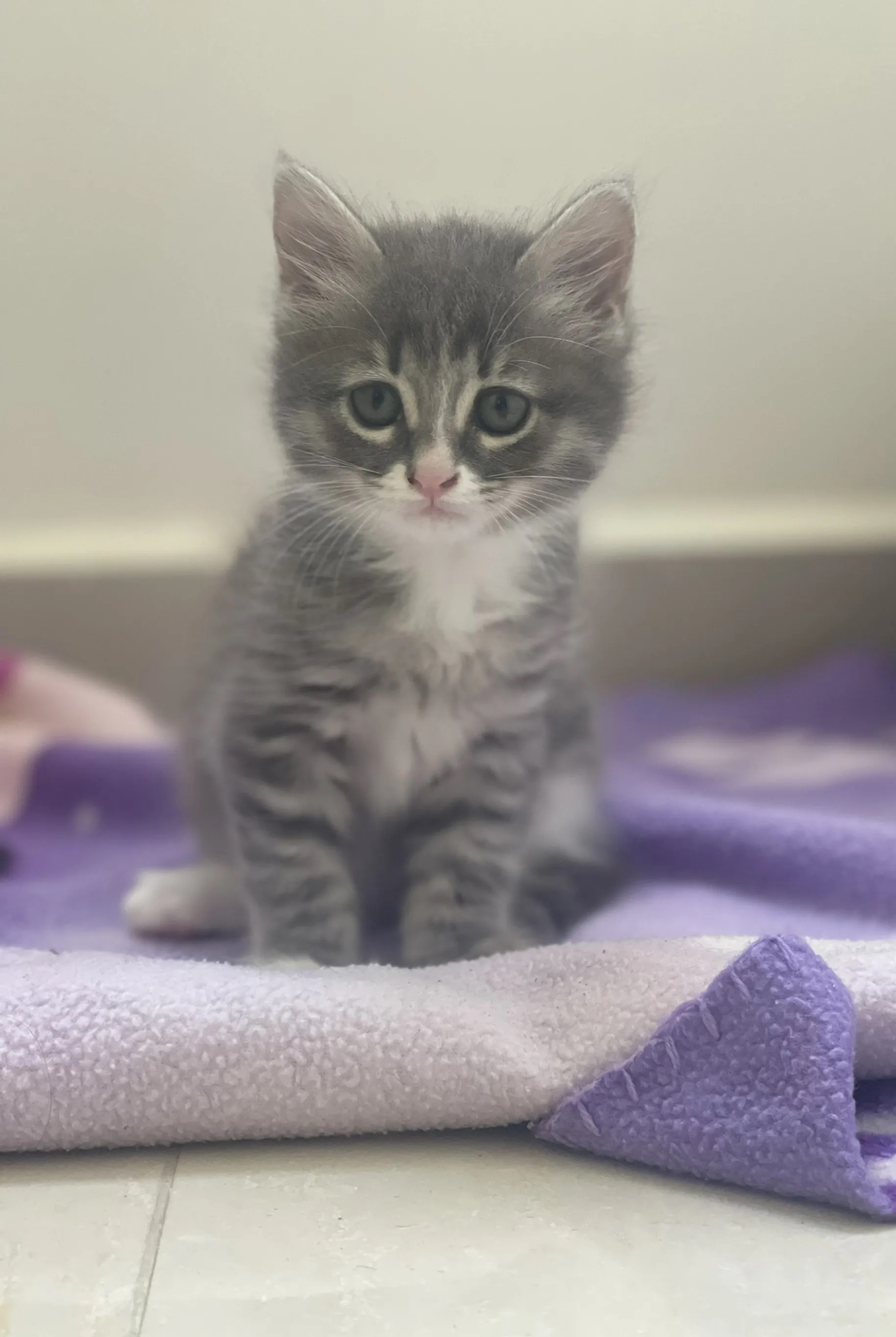 قطه صغيره عمرها شهرين مهعا حوض الرمل و صحن الاكل للتواصل