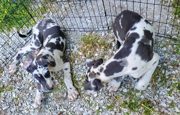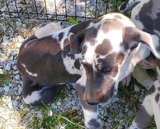 I have two beautiful female great Danes. They are blue harlequin and have wonderful personalities. They are current on all vaccinations including rabies and are microchipped for their safety.
