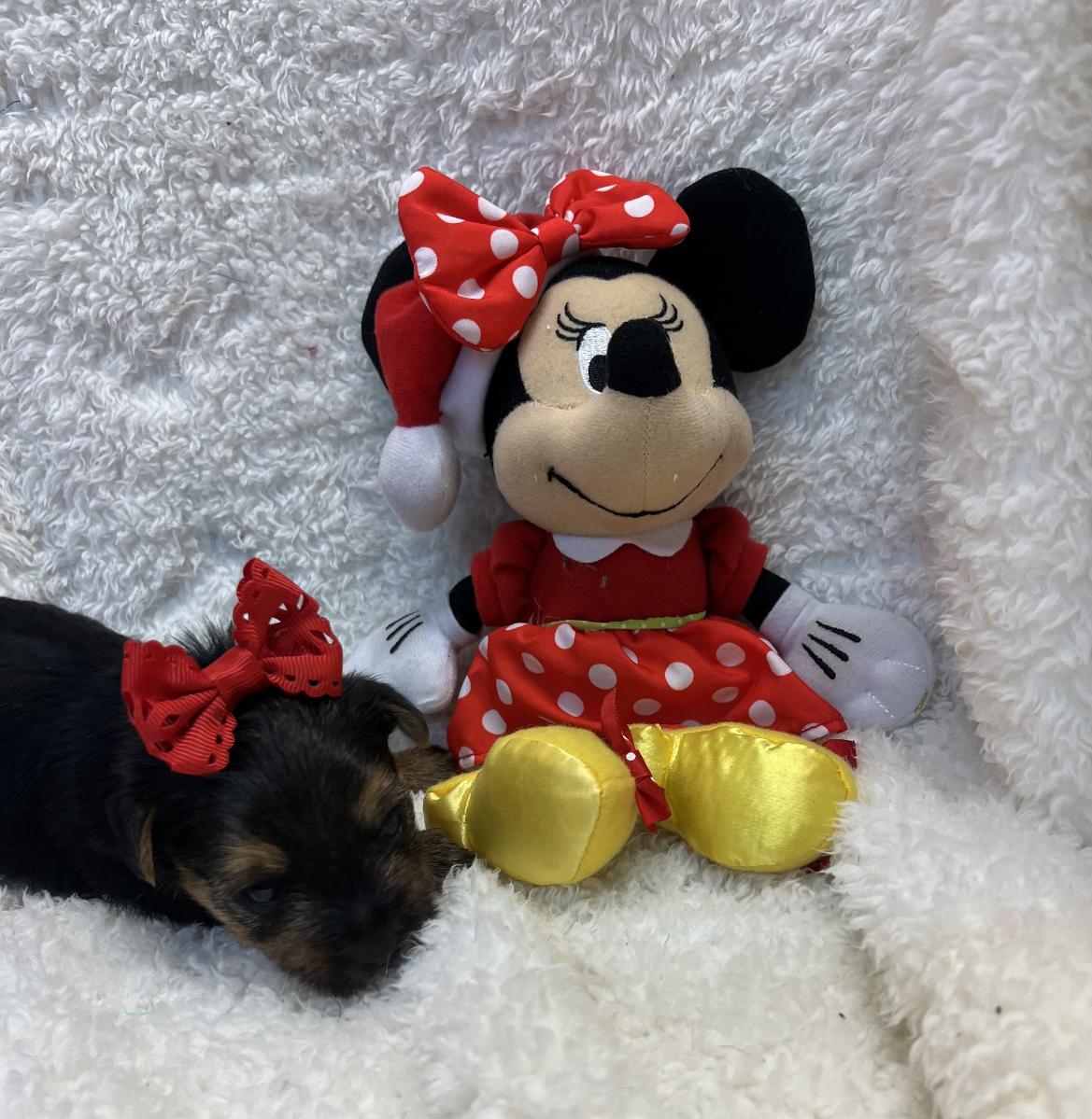 Yorkie , Minnie, sister of 3 :) Harmony Star Kennel , our facebook page has 200 , 5 star reviews. We love to stay in touch , to watch your baby grow. Many families post each birthday :) Minnie is ready July 9th and a deposit of $200 will hold her for you.