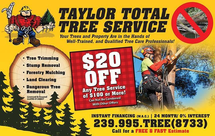 LET TAYLOR'S TOTAL TREE SERVICE TAKE CARE OF YOUR TREES AND HELP YOU GET READY FOR WHAT EVER THE TROPICS BRING OUR WAY.