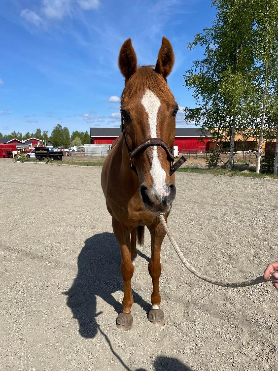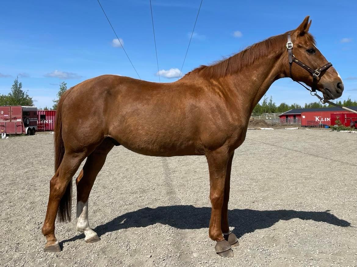 Beobou “Bob” – is a 2001 thoroughbred, who didn’t make it on the track and then was trained by a cowboy, and then trained in dressage and jumping prior to the AKHR. He has been with us since 2014, and used in our intermediate/advanced lesson program. He can go both western and English. He has been shown in First Level Dressage, and has the potential to go higher. He is not a beginner horse, he is a TB with more go than woah, intermediate to advanced only. Proudly offered for sale at $2,500 USD.
