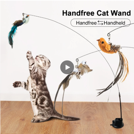 Handfree Bird/Feather Cat Wand with Bell Powerful Suction Cup Interactive Toys for Cats Kitten Hunting Exercise Pet Products. LEARN MORE