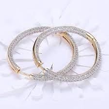 925 Silver 34mm 18K Gold Circle Hoop Earrings For Women Fashion Wedding Jewelry