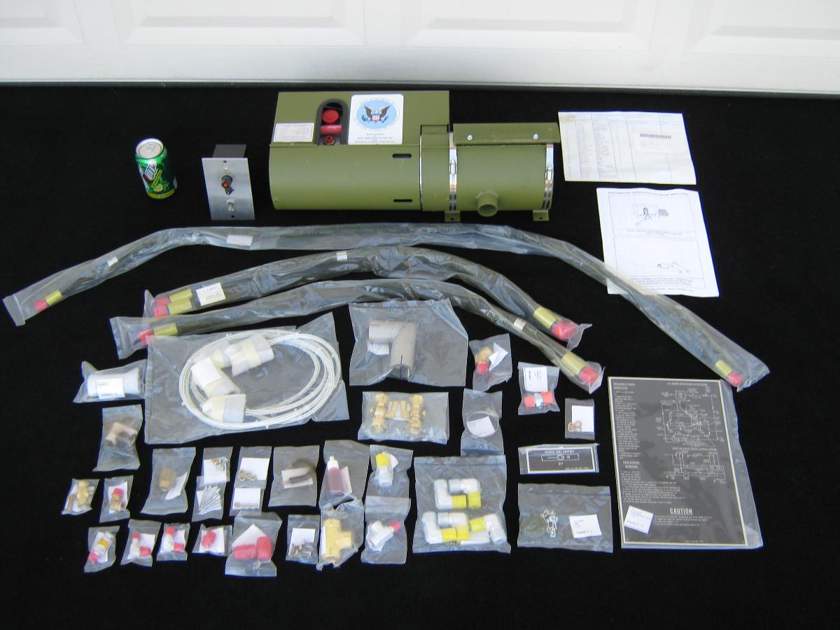 Industrial Engine Cooling System Preheater:  This unit is a diesel fired boiler that gets plumbed into the coolant lines of a diesel engine.  It was originally designed to be used on generator sets to keep the engine coolant warm in cold weather conditions for quick full electrical load startup.  It can be used on many different diesel engine applications.  Operates on 24 volts DC, 30,000 BTU/HR, includes the hardware shown in the photo.  Manufactured by WECO Aerospace Systems, Inc.  Model number: WE 3050-24, purchased new, never installed, $750., no haggle price.  In Escondido, call (760)746-7209   (no emails or texts)