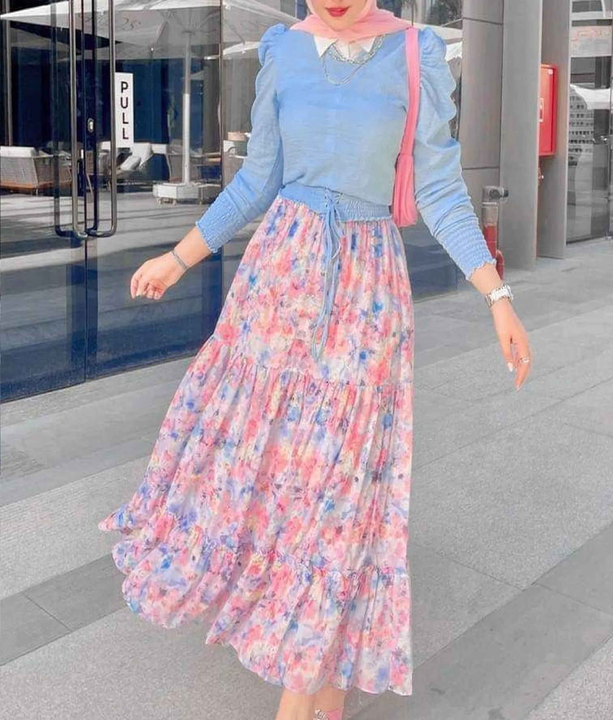 الخامهچيبه شيفون مبطن روزته بلوزة سى واى