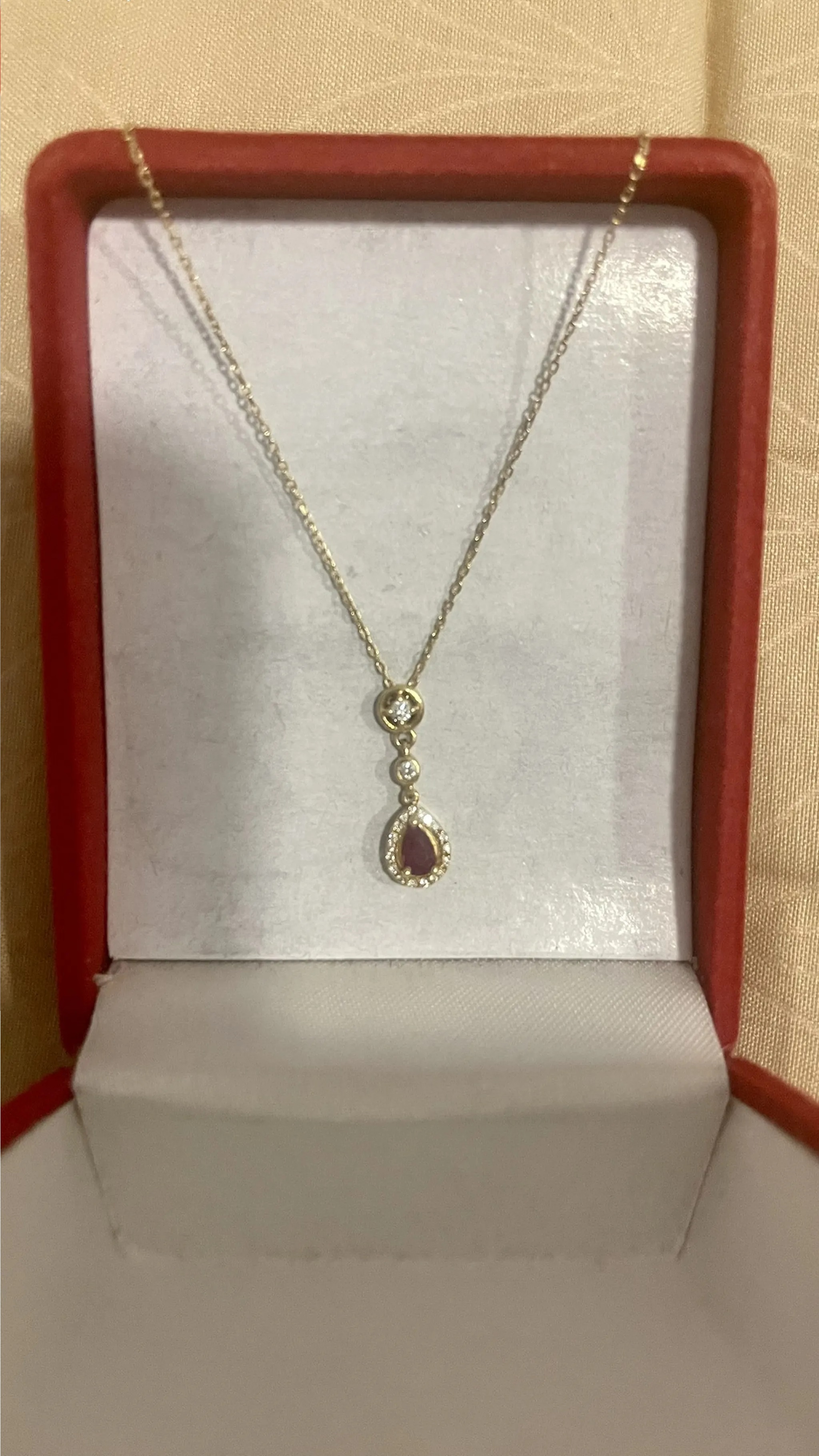 سلسلة من الذهب مرصعة بحجر الروبي والالماس