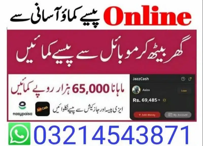 میٹرک اور انٹر کے طلبات کے لیے online work. . . . . . اب گھر بیٹھے اپنے فون پے کام کر کے روز کے 1500 کماۓ. . . Whatsapp orFacebook پے کام کرنا بہت آسان اگر اپ کرنا چاہتے ہیں تو ابھی مزید معلومات کے لیے رابطہ کریں. Complete guidance Daily,salary by Jazzcash, easypaisa and bank accountLimited seatsApply now
