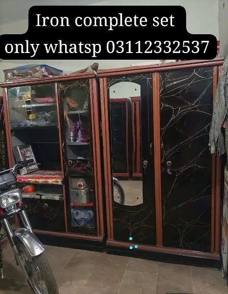 iron bedroom set h 2 door coupbord diviter 6/6 king size bed without mattress condition jesi pic ma h wesi real me h Kahi se gala hwa Zang lga hwa NH h almari ka aik hinger weld Hoga Bs halki Chadar ka NH NH shifting ki waja se urgent sell krna h rate munasib h zada kami peshi NH Hogi location liyaqatabad 2 num jhanda Chowk no msg no chat only serious needed buyer num pe contact kre