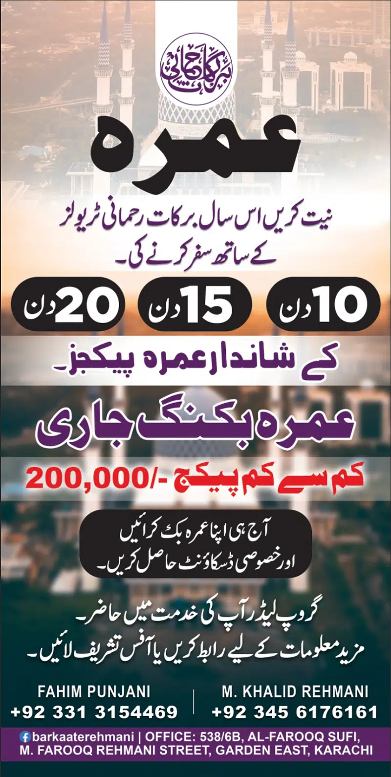 Umrah kijiye Barkaat E Rehmani Travels K Saath or Apna Safar Yaadgar Banaye :)