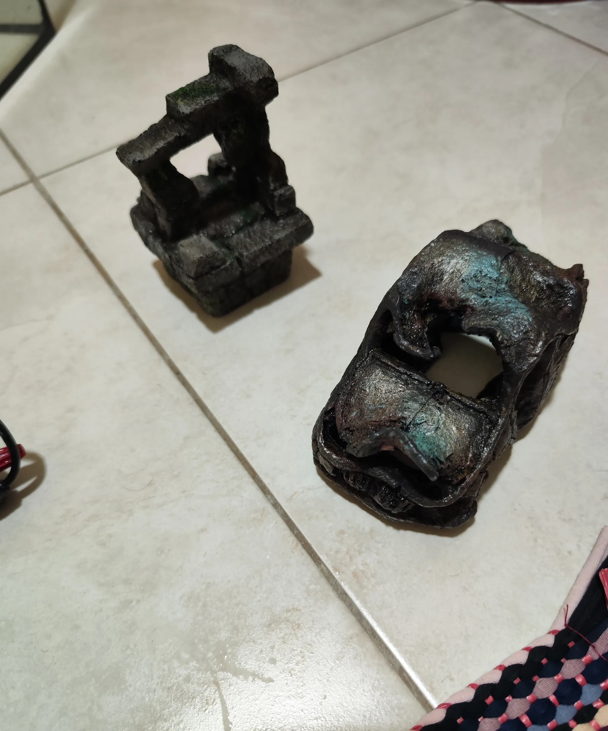 حوض أسماك مع جميع أغراضه / مسخن ماء ، إضاءة متعددة جميع الالوان ، تحف وأشكال ، منظم اوكسجين عدد 2