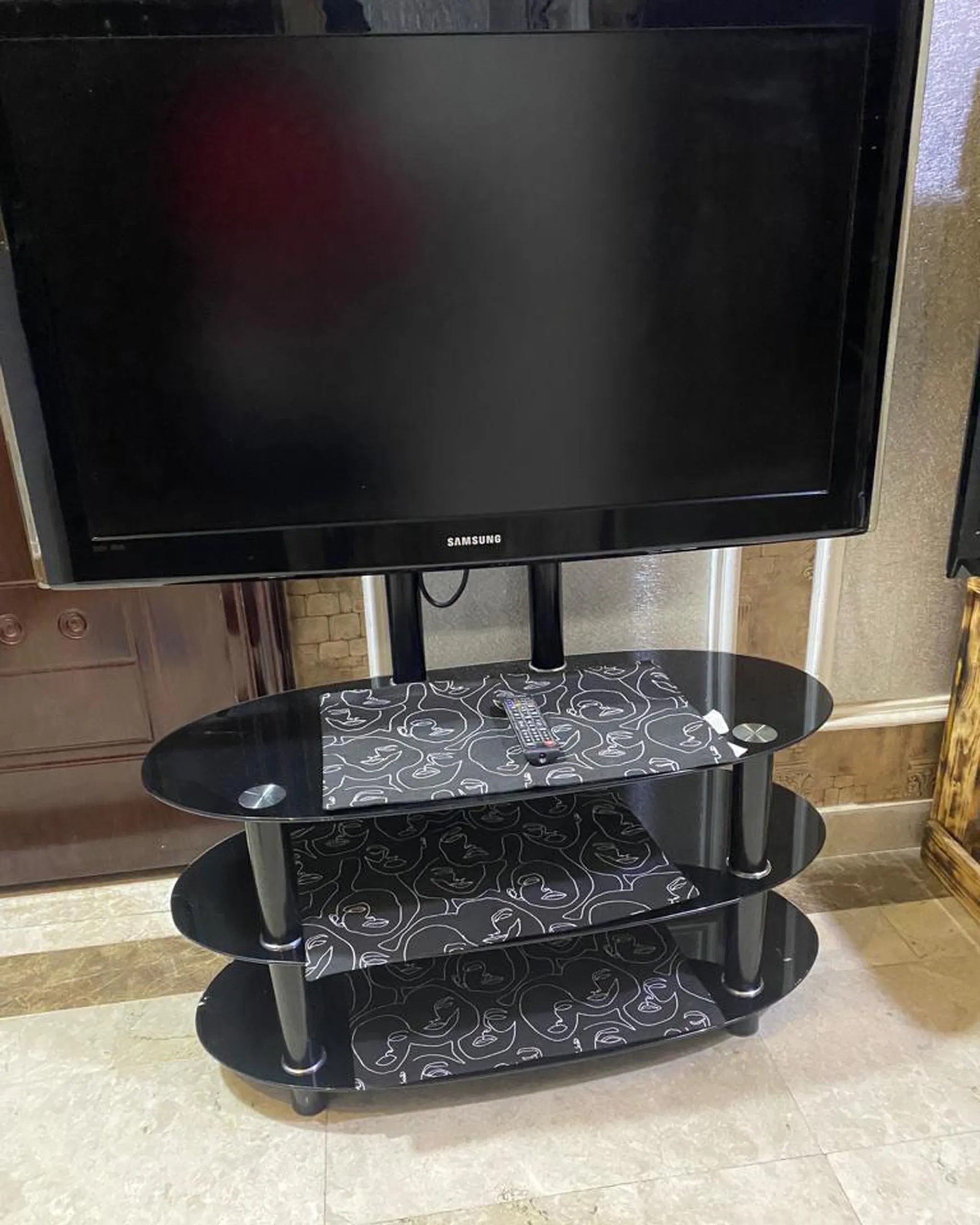 تليفزيون سامسونج 40 بوصة مستعمل بحالة ممتازة مع الطاولة واستاند