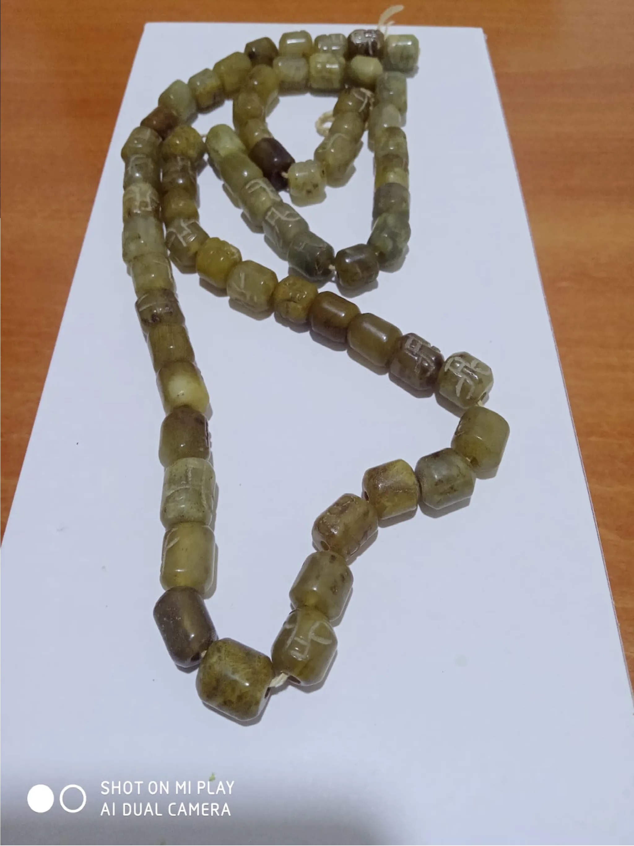 مصنوعه من حجرالنبي سليمان منقوش عليها اسم الامام علي بن ابي طالب وهي تحفة فريدة جدا تصلح قلادة وحالي للنساء أو سبحه للرجال