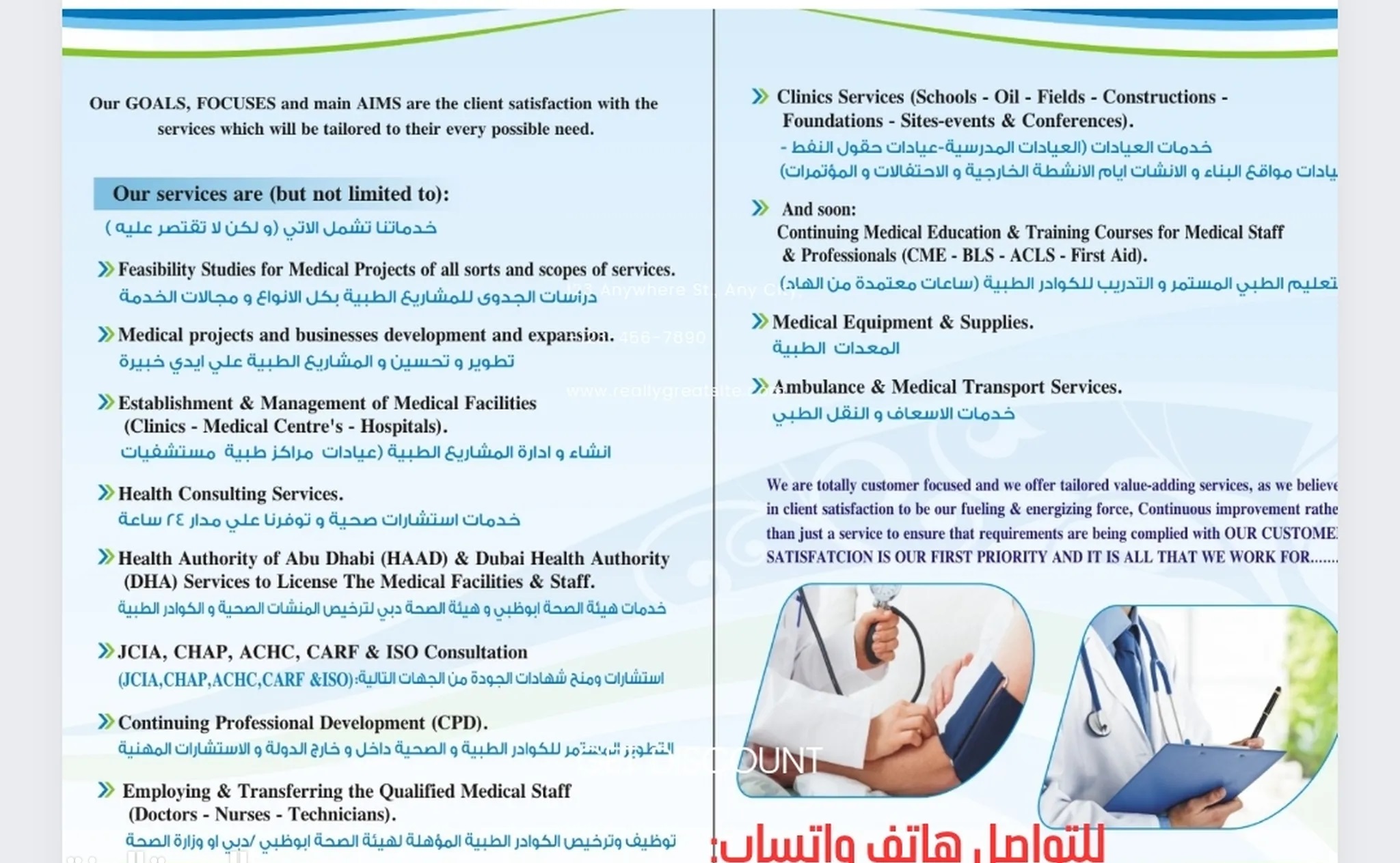 تقديم خدمات طبية في كل المجالات دراسات الجدوي للمشاريع الطبية ادارة المنشات تراخيص هيئة الصحة ودبي وكافة الخدمات الطبية