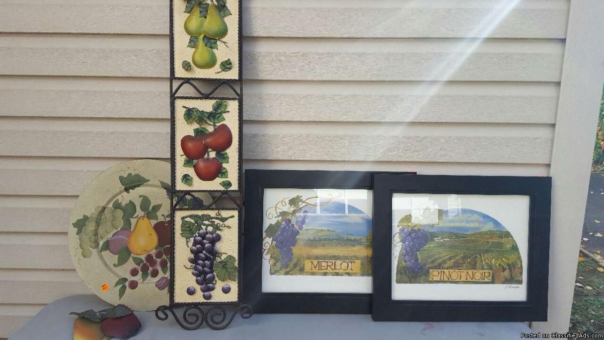 Fruit over-the-door hanger, plate, separate pieces of fruit; 2 pictures.