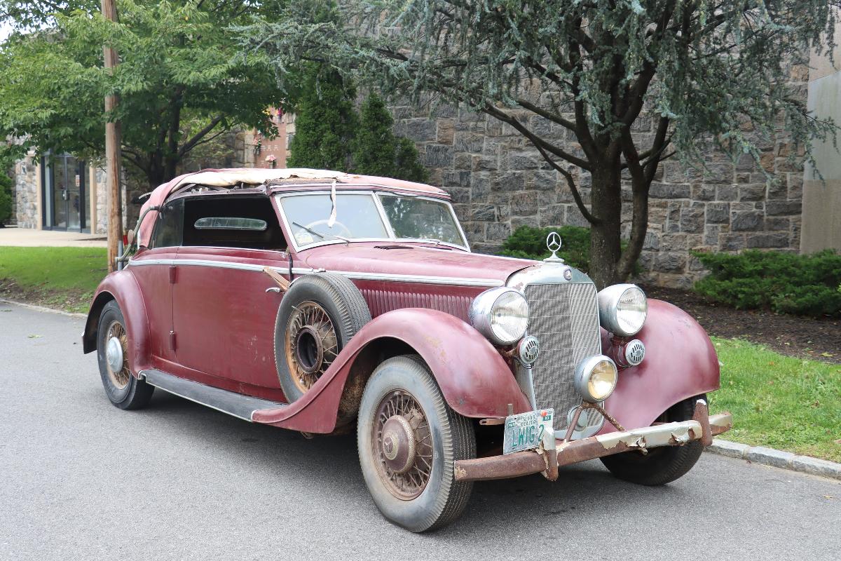 This 1938 Mercedes-Benz 320 Cabriolet B is an unrestored Texas barn-find that's been sitting off the road since 1983 patiently awaiting a straightforward restoration. Burgundy with tan leather interior. An extremely collectible and sought after Mercedes to restore. A solid Texas car that's complete and intact. The ideal original car that's remained undisturbed and untouched for most of its life. A very special discovery indeed. This handsome 320 Cabriolet B is easily one of the most elegant body styles Mercedes-Benz offered at the time. An attractive body style that fits in quite well with the most elegant era in automotive design. Don't miss this incredibly exciting opportunity to own and restore this 320 Cab B.
