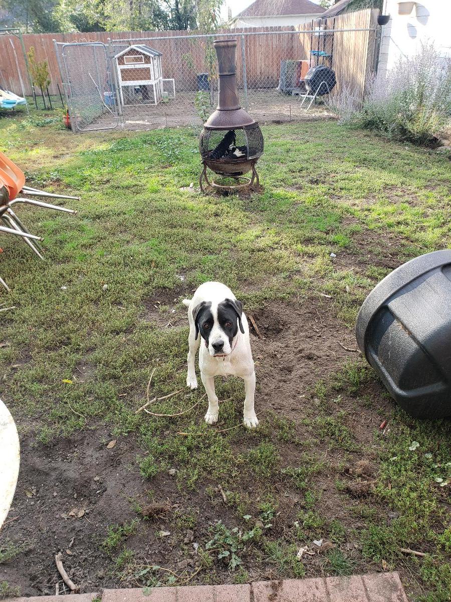 4 years old, mother was a lab and father is unknown. Medium size. Comes with food, pet bed, leash/ collar and toys.